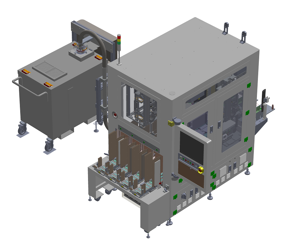 Lot Tray를 병합하여 배출하는 자동화 장비입니다
